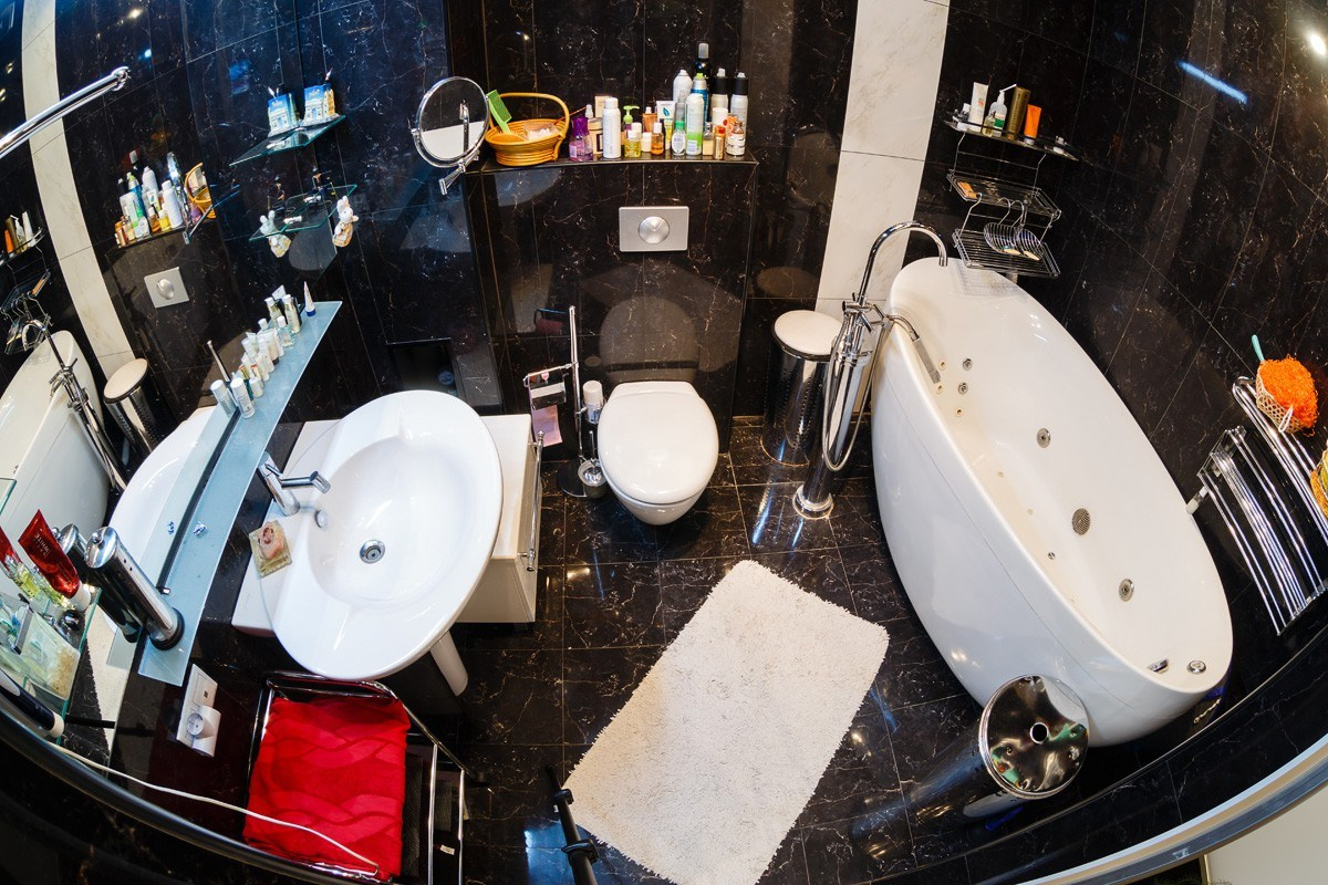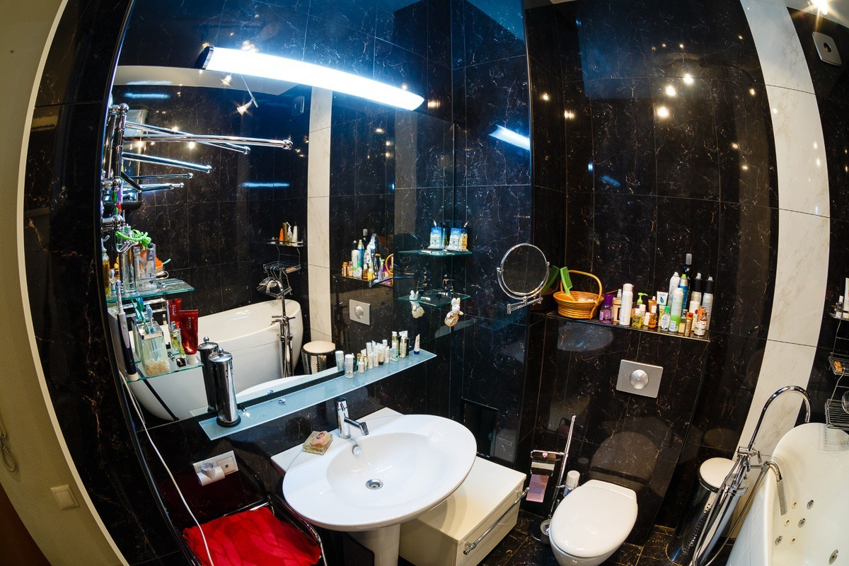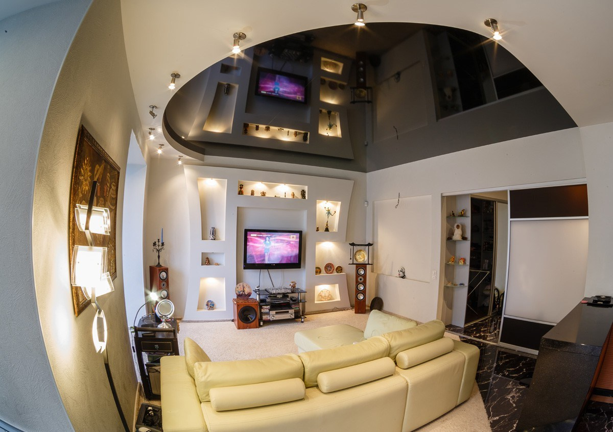 Пример фотосъёмки квартиры — студии с очень хорошим дизайнерским ремонтом, для того что бы показать как все расположена в небольшом пространстве использовал широкоугольный объектив «фишай»