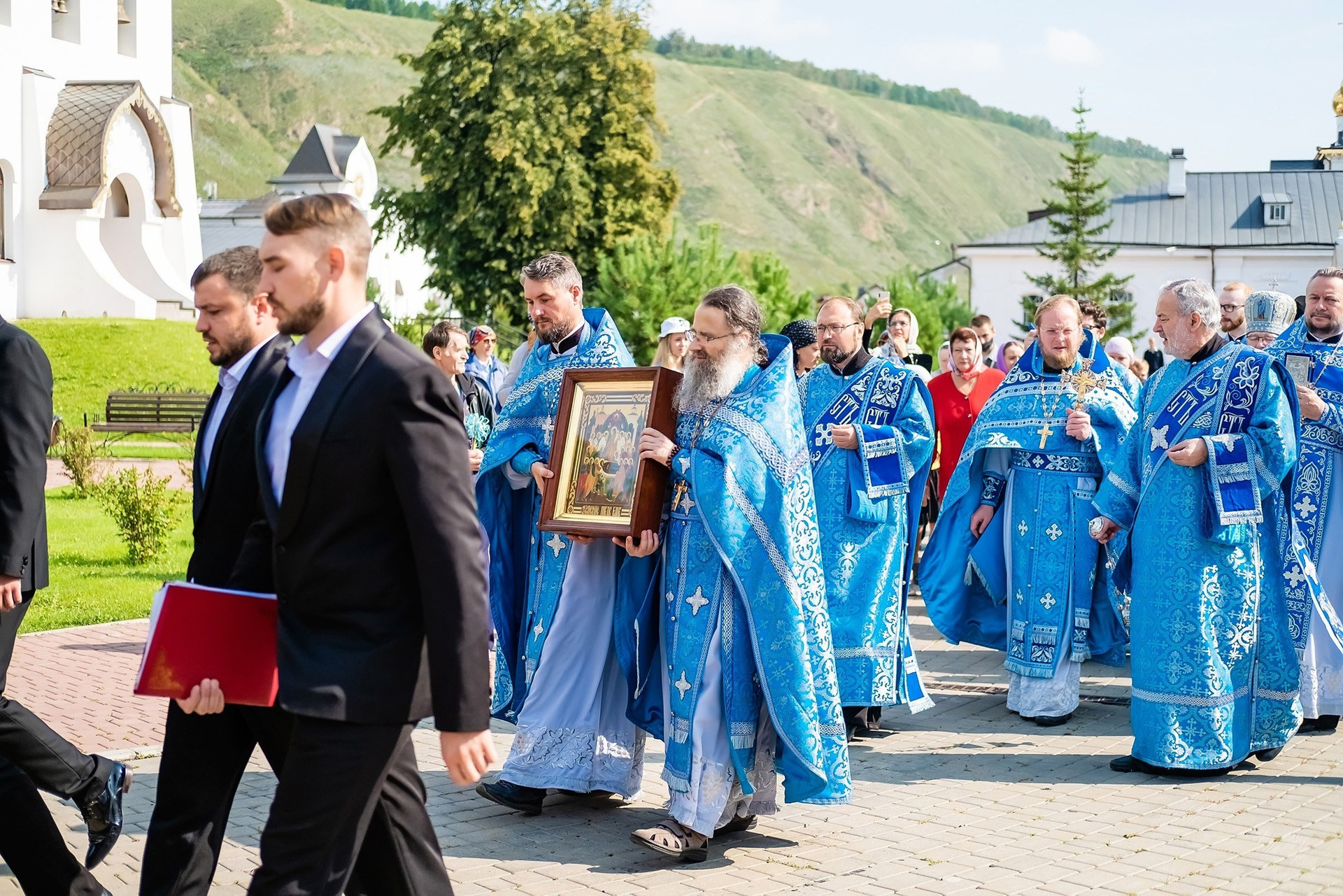 Митрополит Красноярский и Ачинский Пантелеимон совершил торжественное богослужение, на котором в числе прихожан присутствовал губернатор Красноярского Края Александр Усс, во многом благодаря его покровительству Успенский мужской монастырь стал одним из красивейших Культурно-исторических центров в Красноярске.