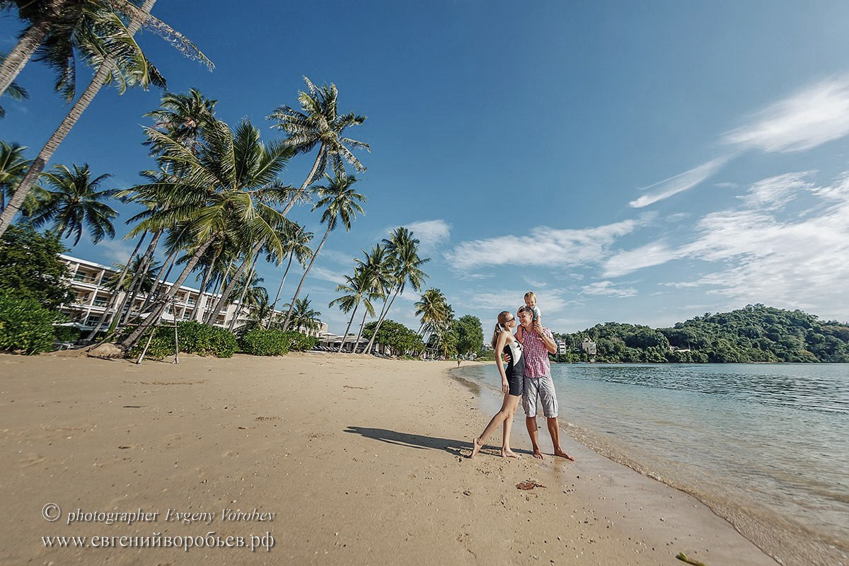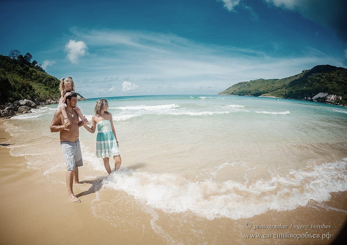 Семейная фотосессия на пляже Пхукета — это яркие эмоции, счастливые улыбки, брызги воды. Если вы отдыхаете на популярных пляжах острова Phuket — Карон, Ката, Катаной, Найхарн, Сурин, Панва, Майкао то лучшее время для Семейной фотосессии это раннее утро — пока не жарко и на пляже мало туристов. Если у вас маленький ребенок то главный критерий, по которому будет выбираться время съемки — это режим вашего малыша. Большинство малышей пребывают в хорошем расположении духа по утрам и теряют запас энергии к вечеру.