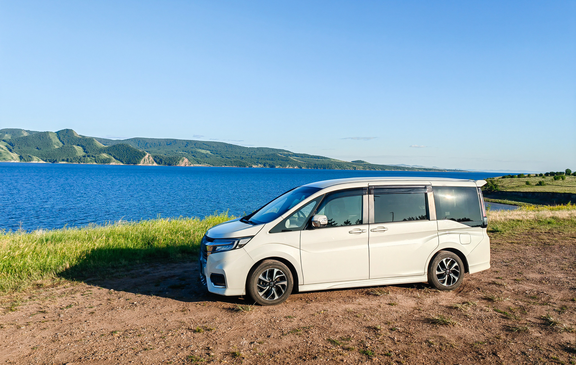1. Поездка в Дивногорск: дорога вдоль Енисея — виды на реку и горы.